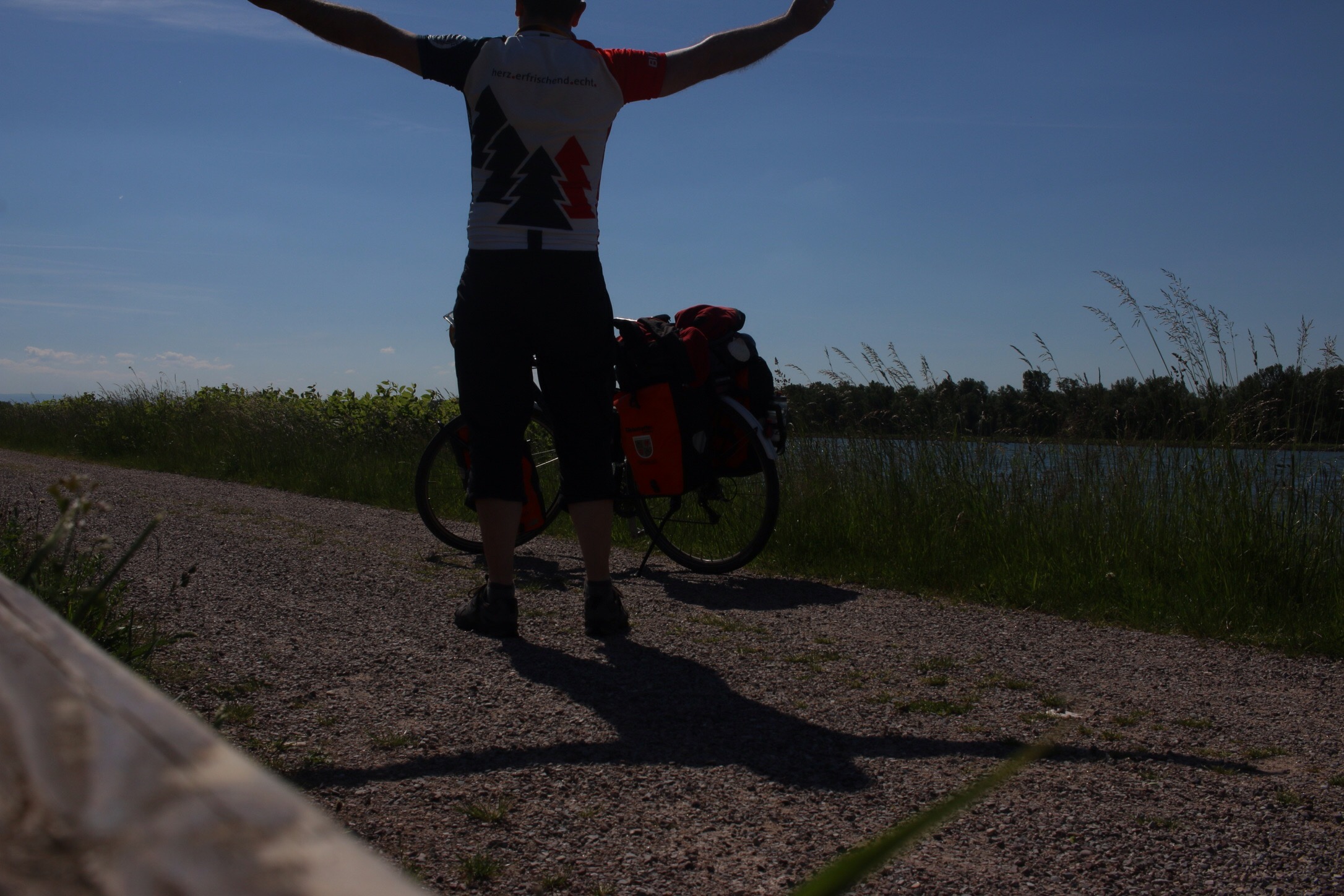 Auch wenn der Rheindamm im mittleren und südlichen Baden nach 80 Kilometern irgendwann langweilig wird, weil sich die Landschaft überhaupt nicht abwechselt und er teilweise schnurgerade verläuft, so dass man sieben oder acht Kilometer des kommenden Weges sieht, hatte ich dort doch das Gefühl, jetzt endlich auf Pilgerreise zu sein. Vielleicht ist es der Eindruck der breiten Rheinebene zwischen Schwarzwald und Vogesen, die einem dieses Gefühl von Freiheit gibt.