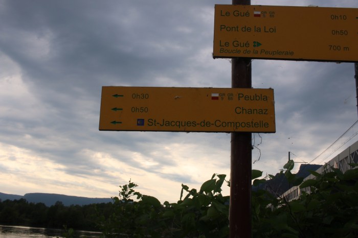 Frankreich begrüßte mich hinter der Grenze in Chancy mit ein paar knackigen Steigungen. Gut möglich, dass es meiner eigenen Dummheit geschuldet war, dass der erste Tag eher von der heftigen Sorte war. Denn entweder gibt es dort die teilweise perfekt ausgebaute und ausgeschilderte Via Rhona noch nicht, oder ich habe sie nicht gefunden.